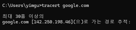 보다 구체적으로 확인하려면 tracert 명령어를 활용할 수 있습니다.