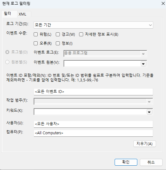 또는 특정 이벤트 ID를 입력해 필터링할 수도 있습니다.