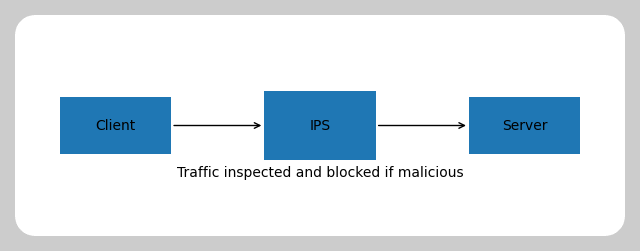 이 때문에 IPS는 보통 네트워크 경로 중간에 위치합니다. 트래픽이 IPS를 통과하는 동안 공격 여부를 판단하고 위험한 패킷은 차단합니다.