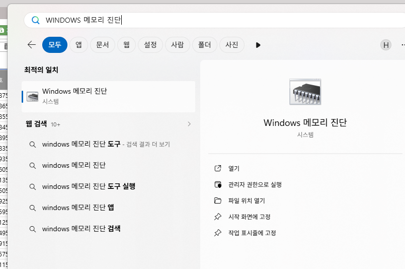 이런 상황이 생기면 많은 분들이 윈도우 문제인지, 프로그램 문제인지, 아니면 부품 문제인지부터 헷갈리게 됩니다. 실제로 블루스크린 원인은 여러 가지가 있을 수 있지만, 그중에서 먼저 확인해볼 만한 항목이 바로 메모리입니다. 특히 사용 중이던 프로그램과 상관없이 갑자기 화면이 멈추고 재부팅되거나, 부팅은 되는데 중간중간 시스템이 불안정하게 느껴질 때는 메모리 상태를 한 번 확인해보는 것이 좋습니다. 이때 별도 프로그램을 따로 설치하지 않아도 윈도우에 기본으로 들어 있는 기능을 이용해 점검할 수 있습니다. 그 기능이 바로 Windows 메모리 진단입니다. 이 기능은 이름 그대로 램에 이상이 있는지 확인할 때 사용하는 기본 점검 도구입니다. 복잡한 설정이 필요한 것도 아니고, 검색해서 실행한 뒤 재부팅만 하면 검사가 진행되기 때문에 어렵지 않습니다. 다만 처음 해보는 분들은 실행은 했는데 결과를 어디서 봐야 하는지, 검사 화면에서 뭘 눌러야 하는지 헷갈리는 경우가 많습니다. 이번 글에서는 윈도우 메모리 진단을 실행하는 방법부터 결과를 확인하는 방법까지 한 번에 정리해보겠습니다.