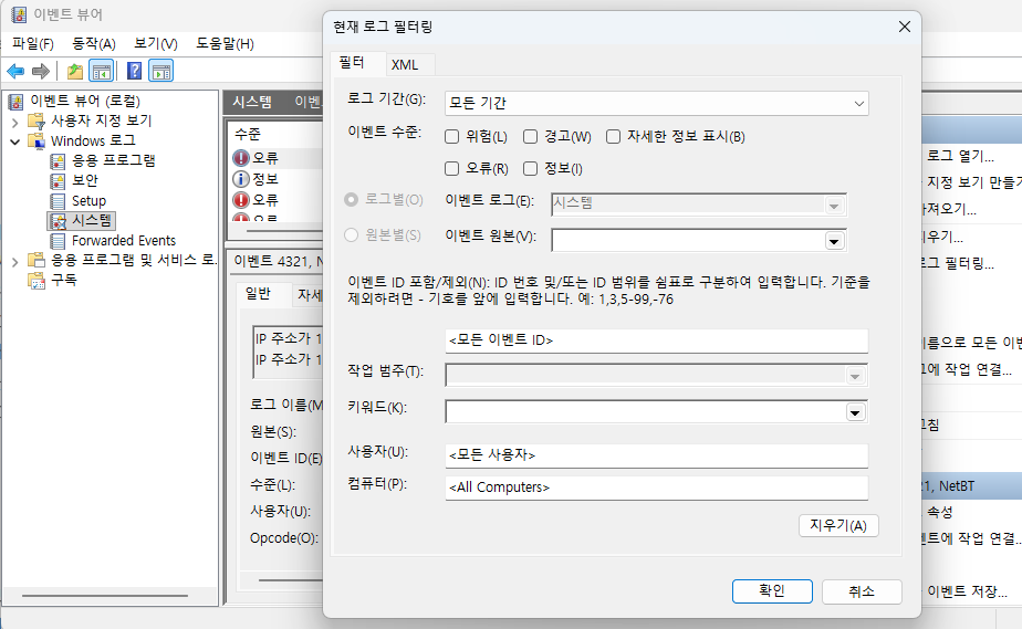 시작 메뉴에서 이벤트 뷰어를 검색해서 실행한 뒤, Windows 로그 안에 있는 시스템 항목으로 들어가면 됩니다. 그다음 오른쪽 메뉴에서 현재 로그 필터를 선택하거나, 관련 로그를 찾아서 MemoryDiagnostics-Results 항목을 확인하면 됩니다. 이 항목 안에는 메모리 진단 결과가 기록됩니다. 정상으로 끝났는지, 오류가 감지됐는지 이 부분에서 확인할 수 있습니다. 많은 분들이 검사만 하고 결과를 못 찾아서 중간에 멈추는데, 실제로 중요한 건 이 결과 확인 단계입니다. 실행보다 결과 확인이 더 중요하다고 봐도 됩니다.
